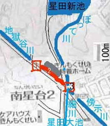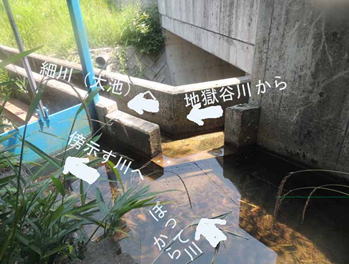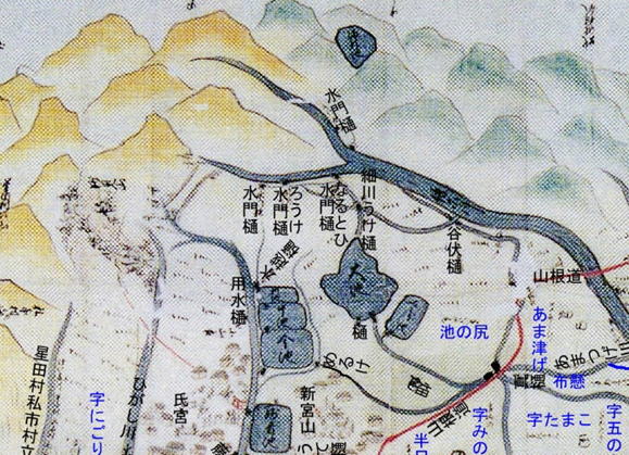 元禄14絵図ではへびが口を開けたような形の傍示川が描かれているが上あごはぼって川で下あごの部分は地獄谷川であり。胴体部分は西周りの傍示川で新規に築造された川であり、ぼって川の水門樋、なるとび、ろうけ水門樋から降雨時の大量水量の時には傍示川に流し、晴天時などの水量が少ない時は細川に流し星田大池で畜量するという原形が出来上がっている