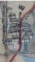 上の地図の黄色い部分は、明治初期の実測絵地図による居住地域である。