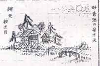 星田名所記に描かれている文化3年(1806年)に建てられた家康行営の記念碑と家康の座所であった奥書院の上段の間を模して造られた記念の建造物