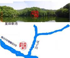 星田新池の水は、傍示川に流れ込んでいるが、そのあたりの小字名を地下下といった。星田新池の築造は、明治の後期であり、それまでは、現在星田新池の東側に流入しているなすび石の谷と西側に流入しているぼっての谷が合流し、ぼって川となり、傍示川に流れていた。昔のはげ山の星田の山では、このように星田新池の無い状態で、降雨時を考えれば,不しを(傍示)川荒れ、の最も厳しいところであったと思われる。